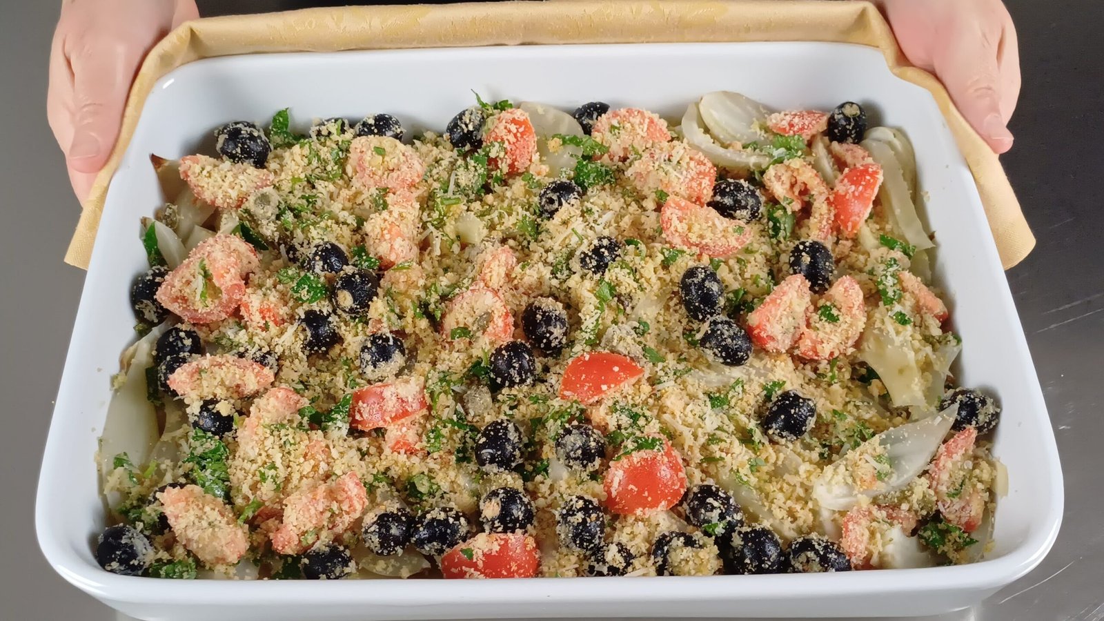 I finocchi gratinati rappresentano uno dei contorni più amati nella cucina italiana. Sono leggeri, saporiti, facili da preparare e perfetti per accompagnare una varietà infinita di secondi piatti: carne bianca o rossa, pesce alla griglia, formaggi, frittate, burger vegetali o polpette. Questa versione è ancora più ricca e golosa perché impreziosita da olive nere, pomodorini e capperi che donano una nota mediterranea intensa, e da una panatura croccante che rende ogni boccone irresistibile. Una ricetta che si prepara in pochi minuti, con ingredienti semplicissimi e accessibili, che si trasformano però in un piatto profumato, appagante e naturalmente sano.